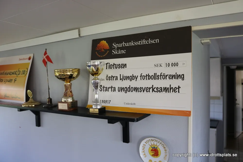 Östra Ljungby IF bildades 1931. Idrottsplatsen invigdes 1957 och till premiären stod Ramlösa BoIS för motståndet – en match som slutade 2–0 till hemmalagets glädje. Namnet Lönnbyvallen dröjde dock till 1981. Det kom till genom en namngivningstävling där två kvinnor lämnat förslaget. Orsaken sägs vara att de hört sina fäder nämna Östra Ljungby, men trott att de sagt Östra Lönnby. Herrlaget spelade sammanlagt 84 säsonger i egen regi. De sportsliga höjdpunkterna nåddes med två säsonger i division 4. Publikrekordet? Omkring 2 000 betalande åskådare 1991, då föreningen firade 60 år och fick celebert besök. TV-laget stod för motståndet, och i hemmalaget förstärktes man av ingen mindre än världsartisten Marie Fredriksson.